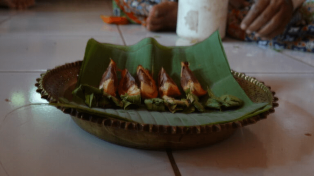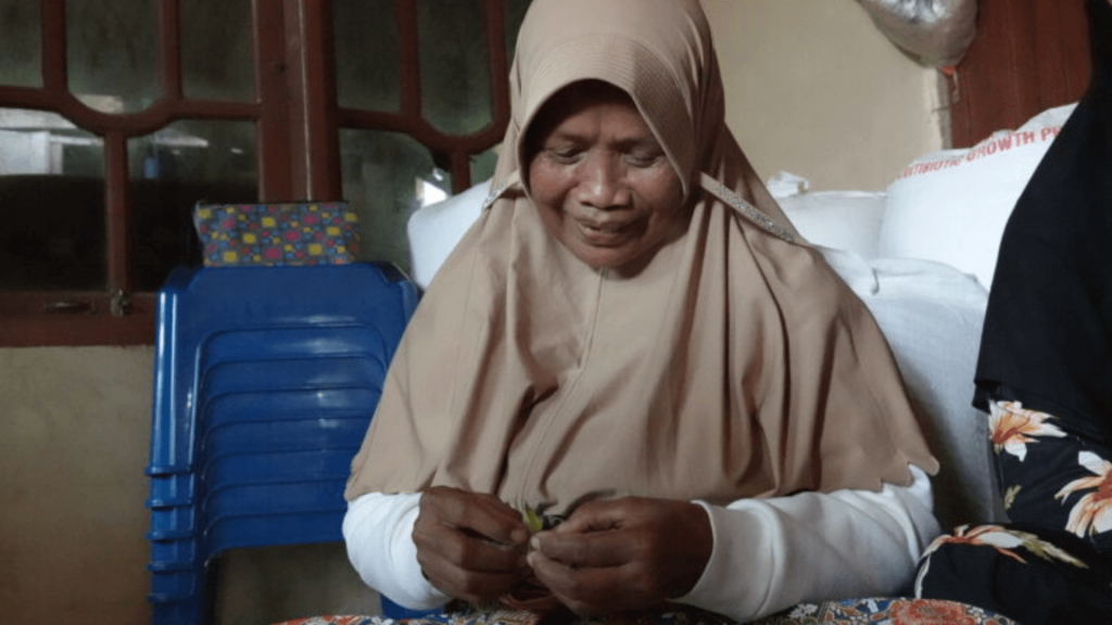 Haswisa bergegas keluar rumah. Dia memetik pinang dan daun sirih yang tertanam di pekarangan. Perempuan 60 tahun itu membawa segelas air dan toples berwarna putih.