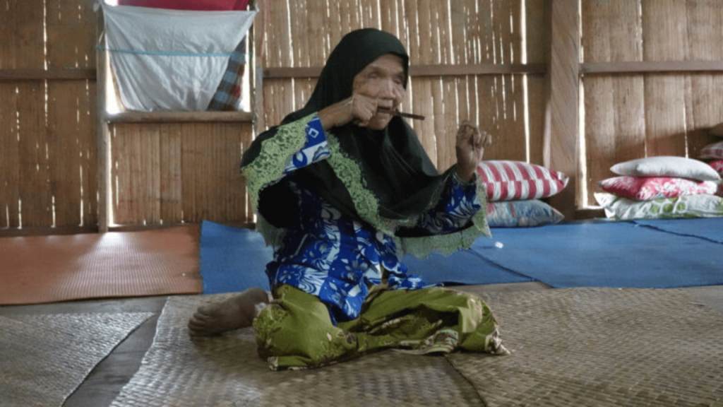 Dia juga aktif mengajar karumbing kepada pemuda adat. Walau dia tak bisa melihat sejak lahir, tak menyurutkan semangat Nenek Rasi terus lestarikan adat.